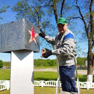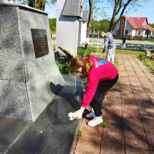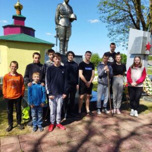В рамках месячника по благоустройству памятников воинской славы учащиеся Скороднянской средней школы Ельского района вместе с руководителем по военно-патриотическому воспитанию приняли участие в санитарной очистке и благоустройству братской могилы в аг. Скородное Ельского района.