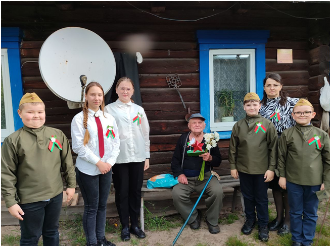 Пионеры и октябрята Конковичской средней школы Петриковского района поздравили узника концентрационного лагеря ВОВ в д.Мицуры Мицуру Фёдора Степановича.