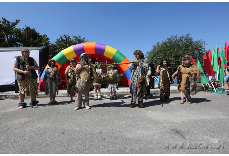 Команды «Древних целителей …Не болит» (ЦРБ), «Потерянные во времени» (сборная команда отдела образования), «Ноmе мясиас» (мясокомбинат), «Коммуна «Ы» («Коммунальник Калинковичский»), «Кроманьонцы» (Юровичский сельский совет), «Ледниковый спорт. «Клыки ветра» (сборная спортивных школ), «Семейка Крудс» (сборная отдела образования), «Первый очаг» (колледж мелиорации) и «Племя мудрых» (аграрный колледж) покорили зрителей яркими, искрометно-юмористическими, танцевально-зажигательными номерами на конкурсе «визиток» и дефиле древних костюмов. В мехах и шкурах, в костяных бучах, с копьями в руках они выглядели так, будто попали на «Мамонт.ВУ» прямо из древних времен.