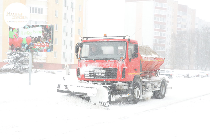 На городских улицах работает 18 единиц спецтехники. За сутки израсходовано порядка 100 тонн песко-соляной смеси. Снег с городских улиц пока складируется на зелёных зонах. Его вывоз будет осуществляться позже на определённые райисполкомом площадки.
