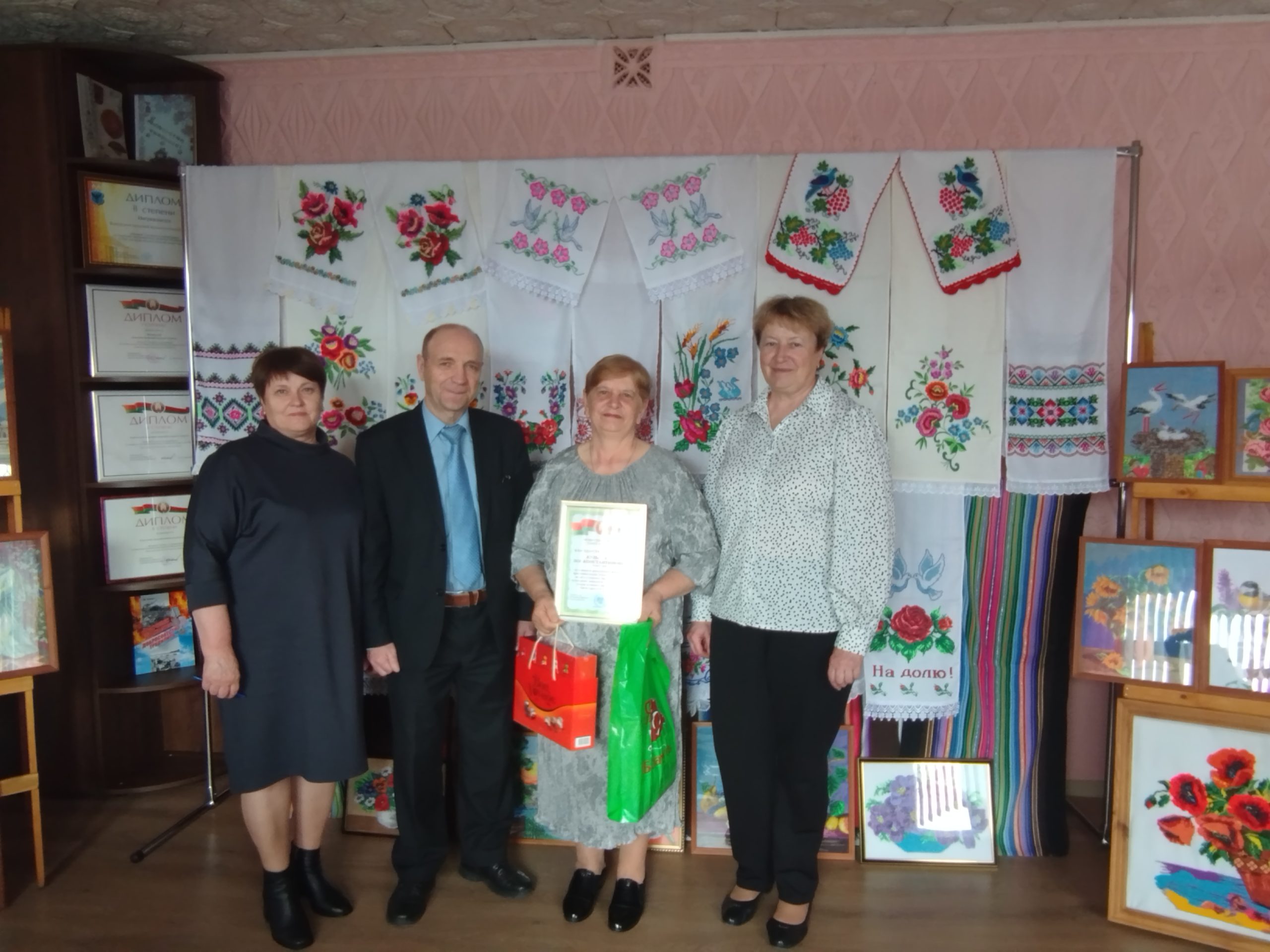 В Год белорусской женщины за активную гражданскую позицию, преемственность поколений, большой личный вклад в сохранение семейных и культурных традиций Зоя Константиновна поощрена Благодарственным письмом от Мозырского районного Совета депутатов и памятным подарком, а также подарком от Каменского сельского Совета депутатов, слова благодарности звучали от всех участников мероприятия.