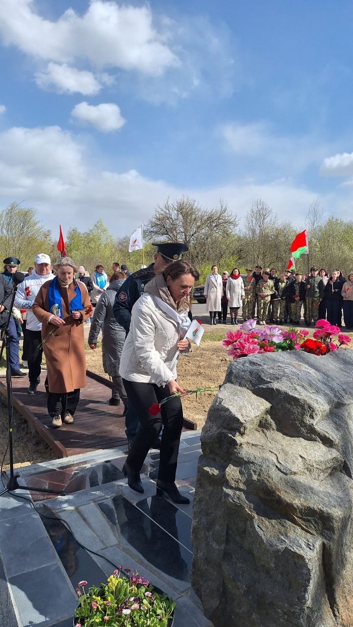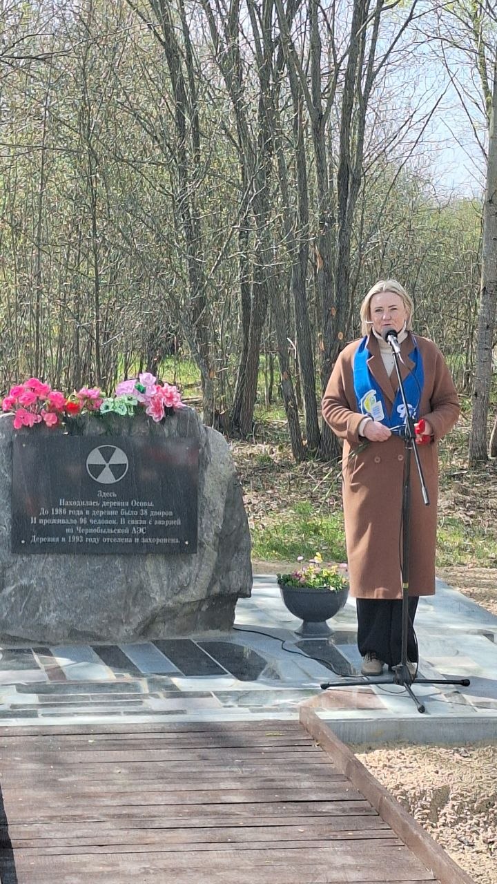 Возлагая цветы у памятного знака, председатель районного Совета депутатов Оксана Захарченко отметила важность сохранения памяти о прошлом, каким бы оно ни было – светлым и добрым или полным драматизма. По ее словам, за 40 лет Беларусь шаг за шагом восстановила жизнь на пострадавших территориях, проделав сложный путь от ликвидации последствий аварии, реабилитации и возрождения пострадавших территорий до перехода их к устойчивому социально-экономическому развитию.